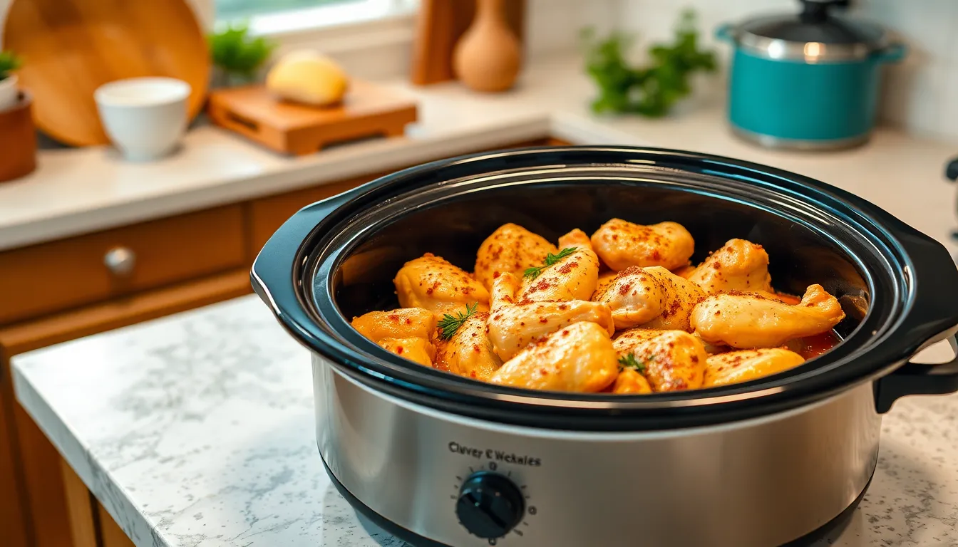 Flavor enhancement thrives in a crockpot. Slow cooking intensifies flavors through prolonged exposure, allowing ingredients to meld beautifully. Sauces thicken and develop depth, resulting in rich dishes. As a result, he or she can easily switch cuisines simply by adjusting spices and herbs. Recipes featuring cream soups, salsas, and other flavorful liquids yield moist chicken that absorbs these flavors effectively. Unique taste combinations emerge as the crockpot creates an environment conducive to culinary creativity.